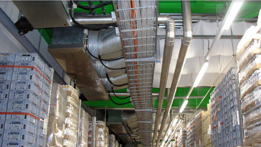为了给物流中心中的产品提供一个更好的保鲜环境,风机的冷却能力尤为重要。无论是乳制品、还是水果、蔬菜和肉制品,它们都需要一个较低的环境温度。然而,仓库内的冷却系统已经运行了二十多年,由于制冷风机的可控性差,根本无法跟上时代的步伐。