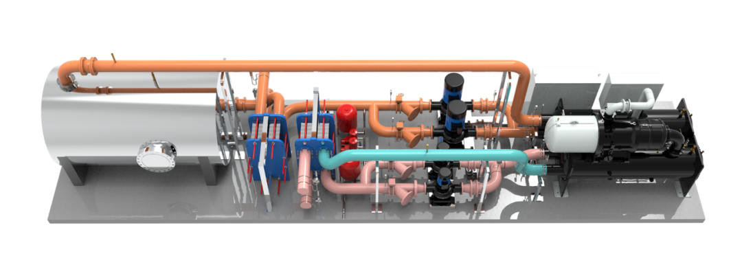 余热回收高效集成热站以EK工业高温热泵为核心,可利用工厂15~75℃各种低品位余热废热,制取60~120℃高温工艺热水/蒸汽,代替传统燃油/燃气锅炉、电锅炉,节能率高达57%。