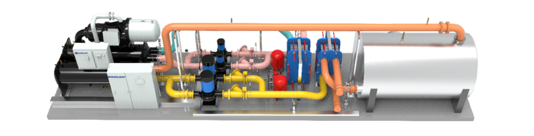 其中,中温热泵机组以工业设计为理念,采用高压比单螺杆压缩机和高效满液式蒸发器,更高效节能;同时,机组还配备三重回油系统和电子膨胀阀节流技术,确保系统的稳定可靠运行。撬块式高效集成热站以其标准化BIM三维设计、热源系统设备集成、设备的供应商集成、维保服务集成、一键启停、智能运行以及体式运输、吊装、安装简便等优势,为用户提供高效、稳定、便捷、智能的冷热源解决方案。