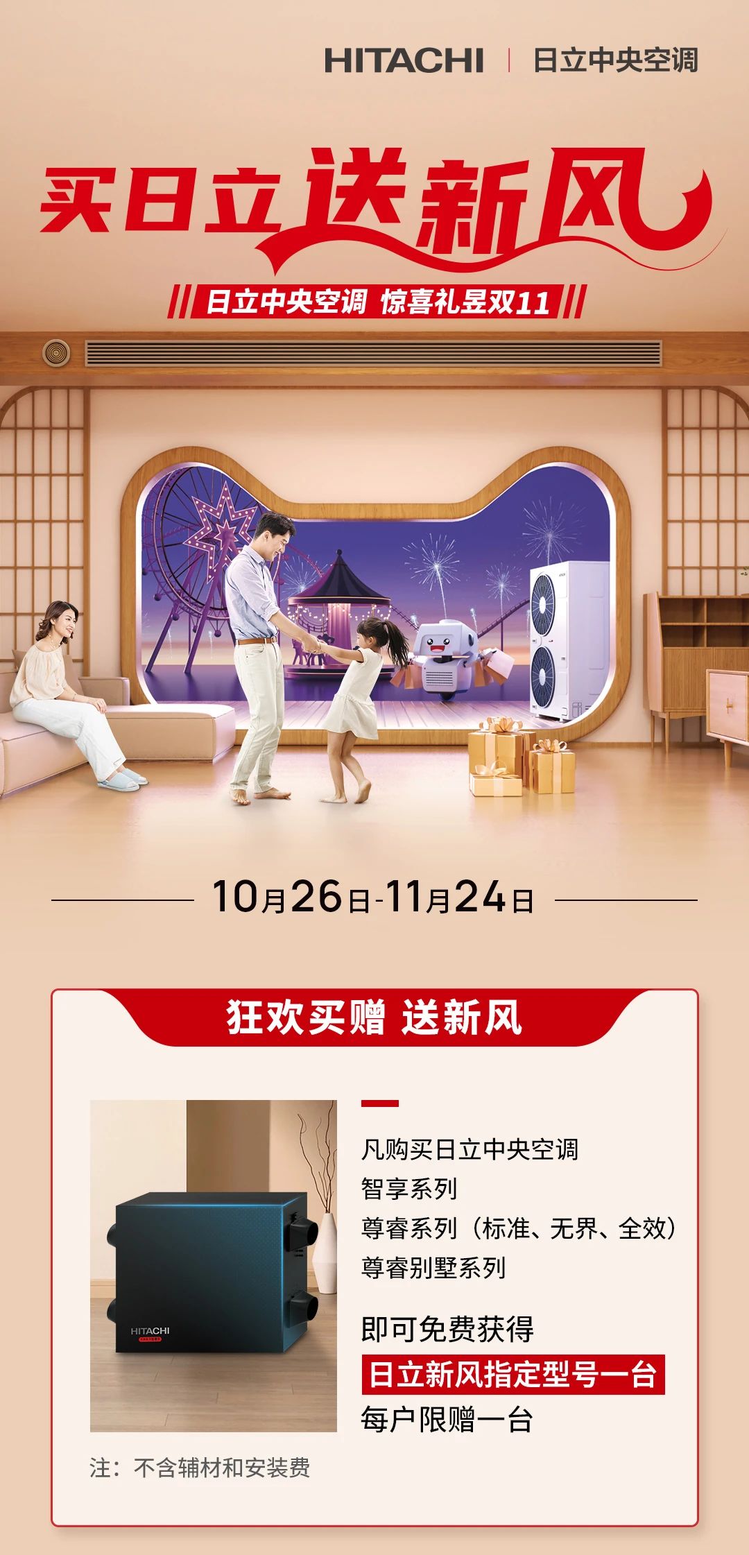 惊喜礼昱双11,买日立送新风!-冷暖资讯-冷暖商情