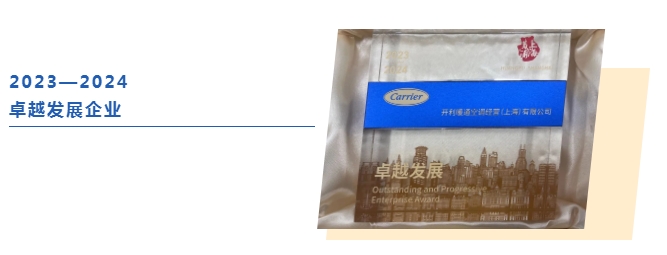开利暖通空调经营(上海)有限公司荣获“2023—2024卓越发展企业”奖