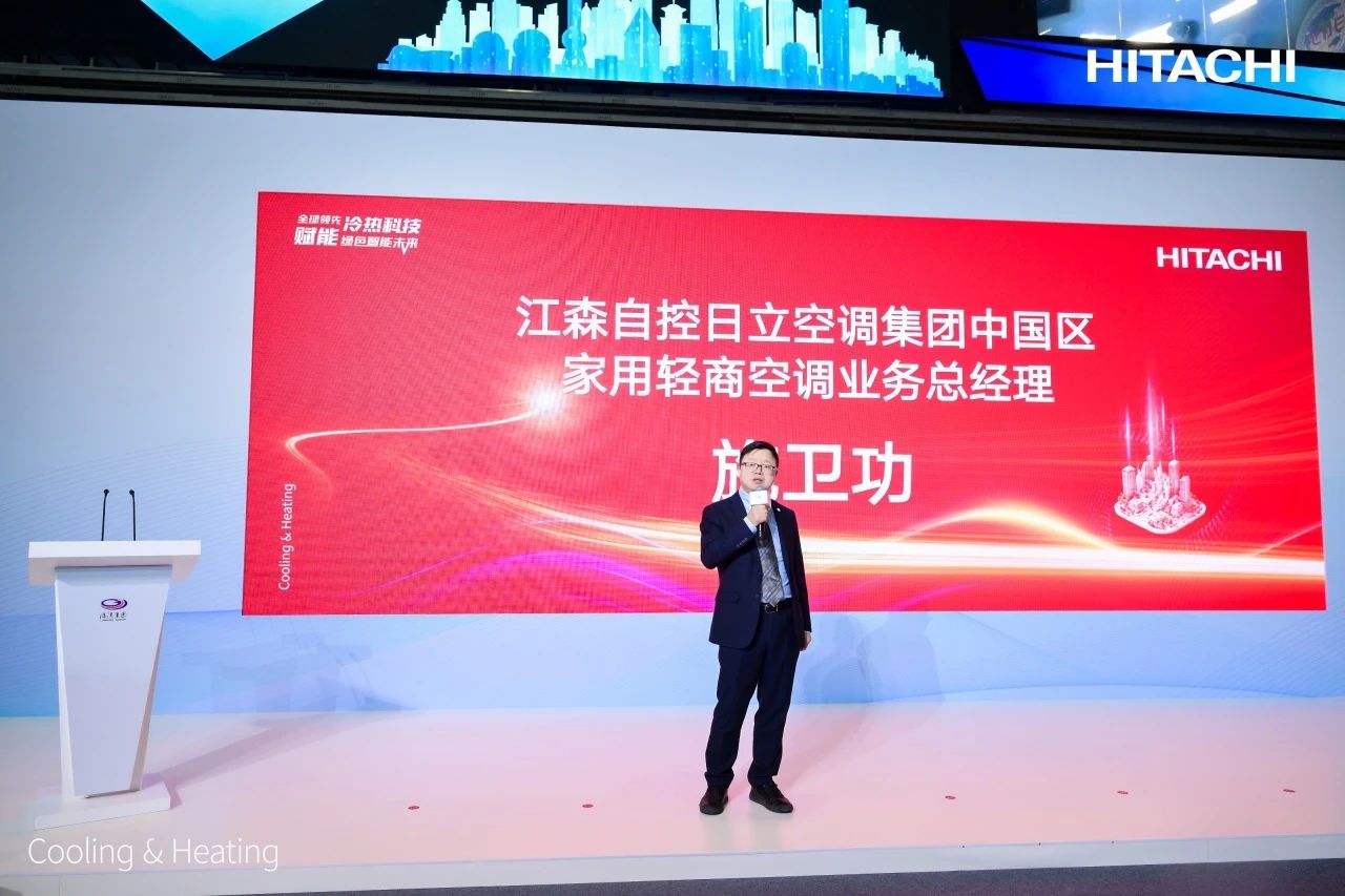 江森自控日立空调集团中国区家用轻商空调业务总经理施卫功在致辞中提到,普及热泵应用是助力全社会节能减排、实现双碳目标的最佳措施之一。为此,我们依托强大研发能力及优异制造水平,推出了更高效、更环保的日立空调R32新冷媒变频模块热泵机组,有效助力多元场景的降碳减排进程。