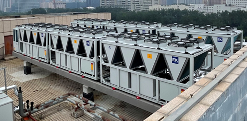 根据对外经济贸易大学图书馆的实际需求,EK空调在图书馆楼屋面配置6台超低温大型空气源热泵机组,装机总冷量为3060KW,装机总热量为3300KW。