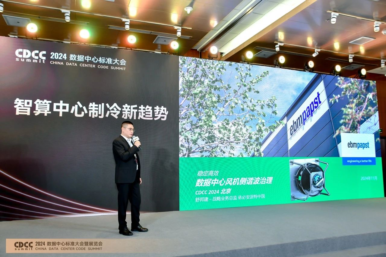 作为通风与制冷行业的专家,依必安派特可为数据中心提供多种冷却解决方案,现已广泛应用于精密机房空调、列间空调、自然冷却和间接蒸发冷却等。此次,数据中心战略业务领域总监Vincent Shu以《稳定高效:数据中心风机侧谐波治理》为题发表专题技术演讲。对于数据中心,谐波治理是一个重要的课题,依必安派特提供的有源滤波风机不仅能够提供高效的散热功能,还能帮助改善数据中心的电能质量,在源头上减少谐波的产生。