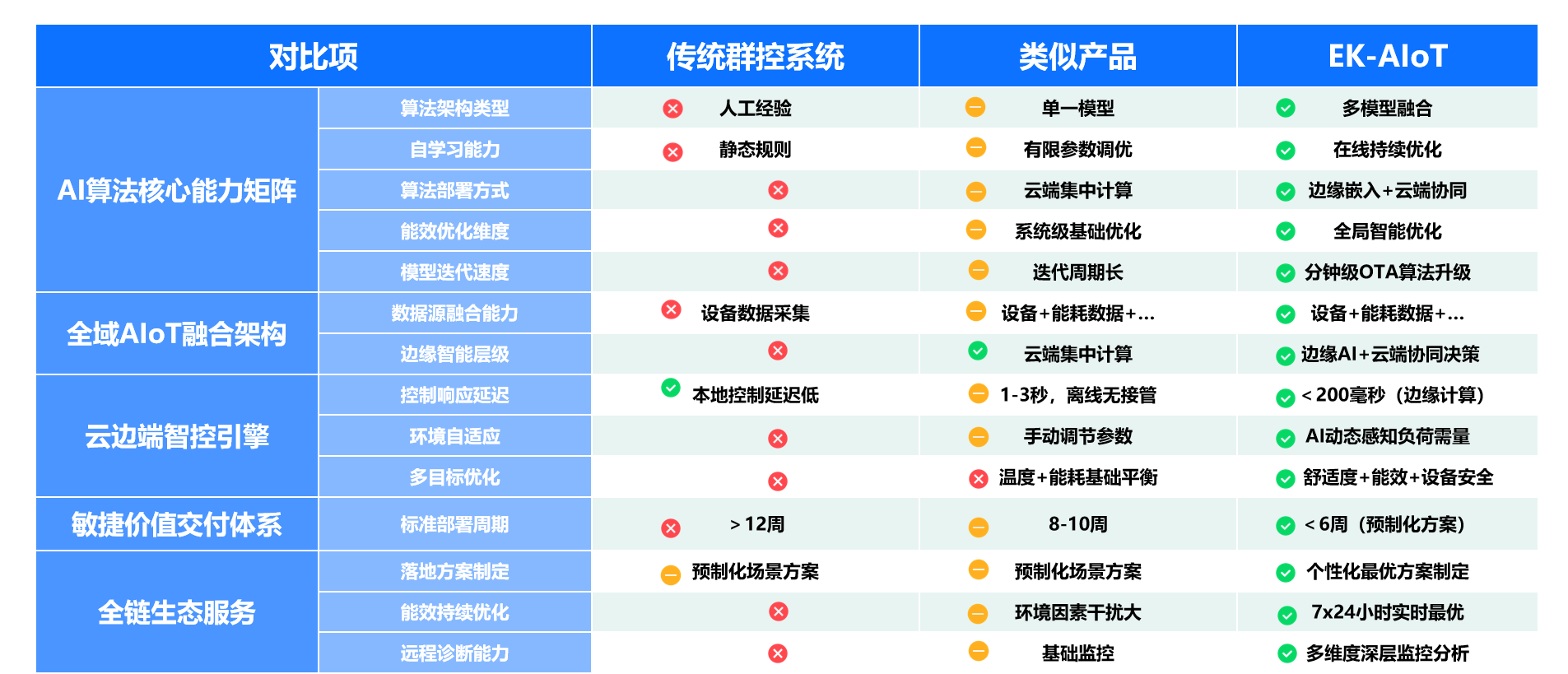 对比其他产品,基于EK-AIoT工业物联网能源优化平台的整套解决方案具有明显优势,助力客户节能低碳!