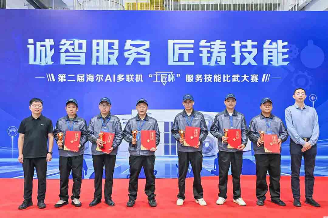 2025年10月17日,第二届海尔AI多联机“工匠杯”服务技能比武大赛在青岛圆满结束。中国设备管理协会节能环保节能委员会主任田春伟、海尔智慧楼宇服务总监孙元魁、智家服务平台培训总监高焕绪、海尔中央空调胶州工厂小微主胡建杰、海尔智慧楼宇服务技术总监康敖出席并发表致辞,与来自全国31个核心服务中心的62名顶尖选手,在“诚智服务 匠铸技能”的主题引领下,共同开启了一场服务技能的专业较量。这场赛事不仅是技艺的比拼,更是海尔智慧楼宇深化服务体系建设、推动行业专业化发展的重要举措。