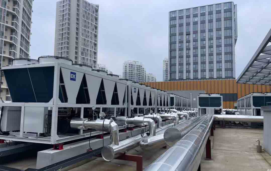 面对复杂需求,EK空调为该大商业综合体配置17台大型变频超低温热泵机组,搭配EK-AIoT智慧云系统进行数智化运维,总制冷量达8840kW,总制热量达9554kW,全面覆盖项目多元负荷需求。