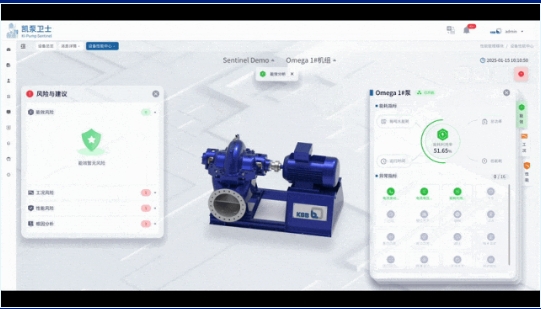 Sentinel凯泵卫士实时监测振动、温度、转速等关键数据,为水泵提供全天候健康守护。