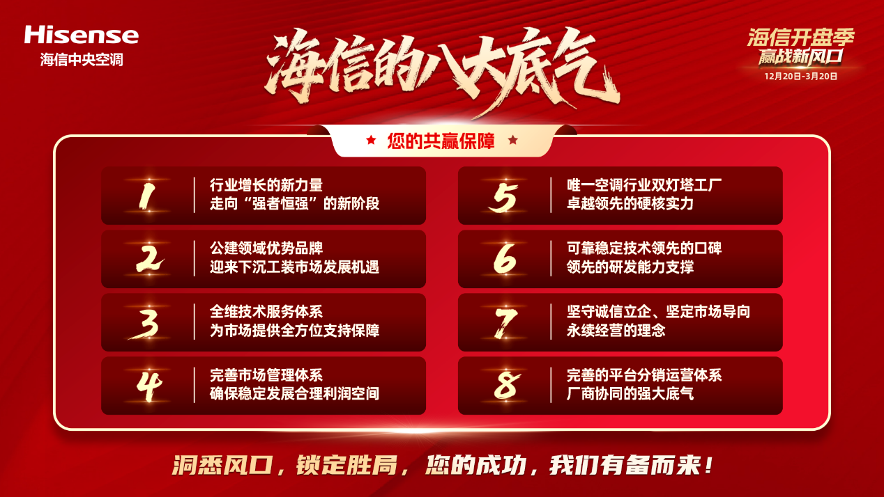 12月,正值年度承上启下的关键节点,暖通行业营销再掀热潮——海信中央空调“与信同行 共赢未来”工装中小开盘季正式启动全国布局。
