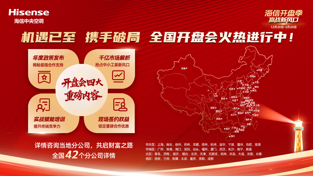 此外,为保障活动的落地效率,海信中央空调依托全国42个分公司(覆盖华东、华南、北区、西区主要城市及县域市场)实现了全域覆盖。