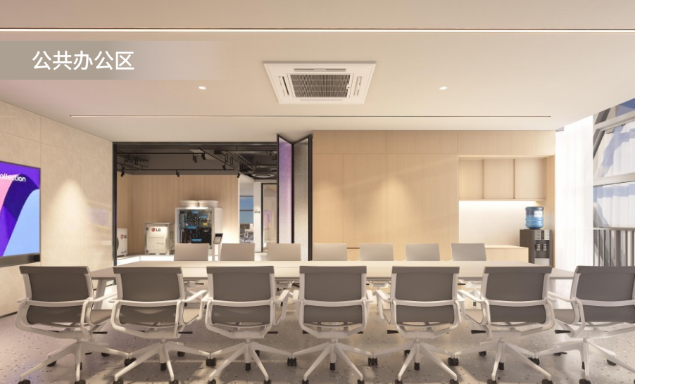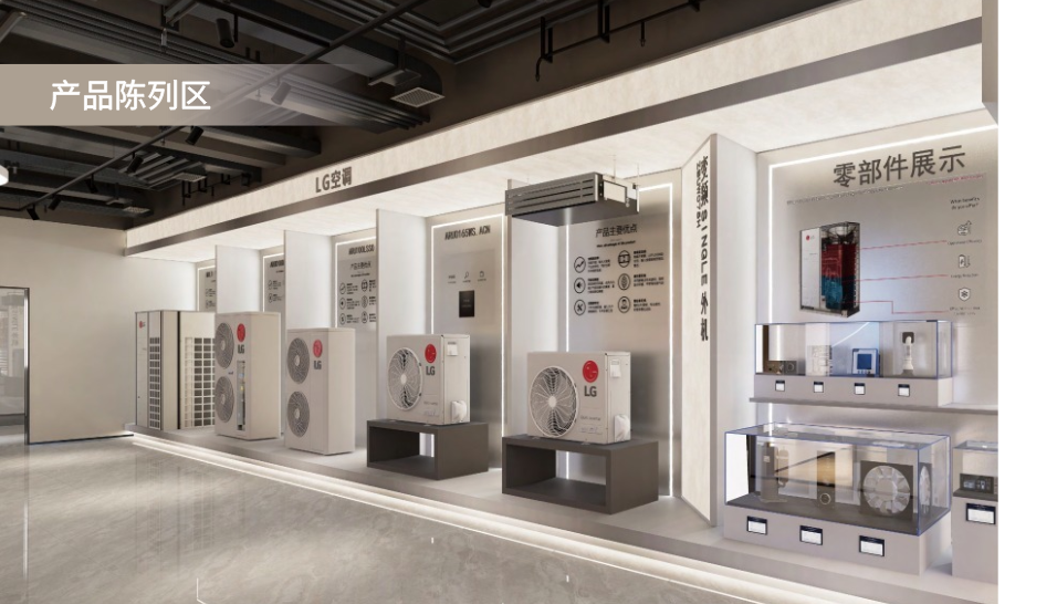 区别于传统门店,LG中央空调两大城市展厅布局科学合理,巧妙地将空间划分为产品陈列区、场景体验区、客户洽谈区、公共办公区、文化展示区,形成了智慧多元的全方位、多功能展厅。