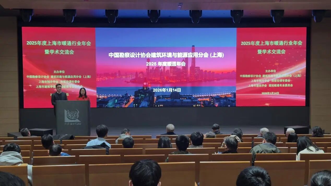 1月14日,由中国勘察设计协会建筑环境与能源应用分会(上海)(以下简称“中设协建环分会(上海)”)、上海市制冷学会热泵空调专业委员会及上海市建筑学会建筑暖通专业委员会共同主办,2025年度上海市暖通行业年会暨学术交流会在同济大学建筑设计研究院(集团)有限公司成功举办。