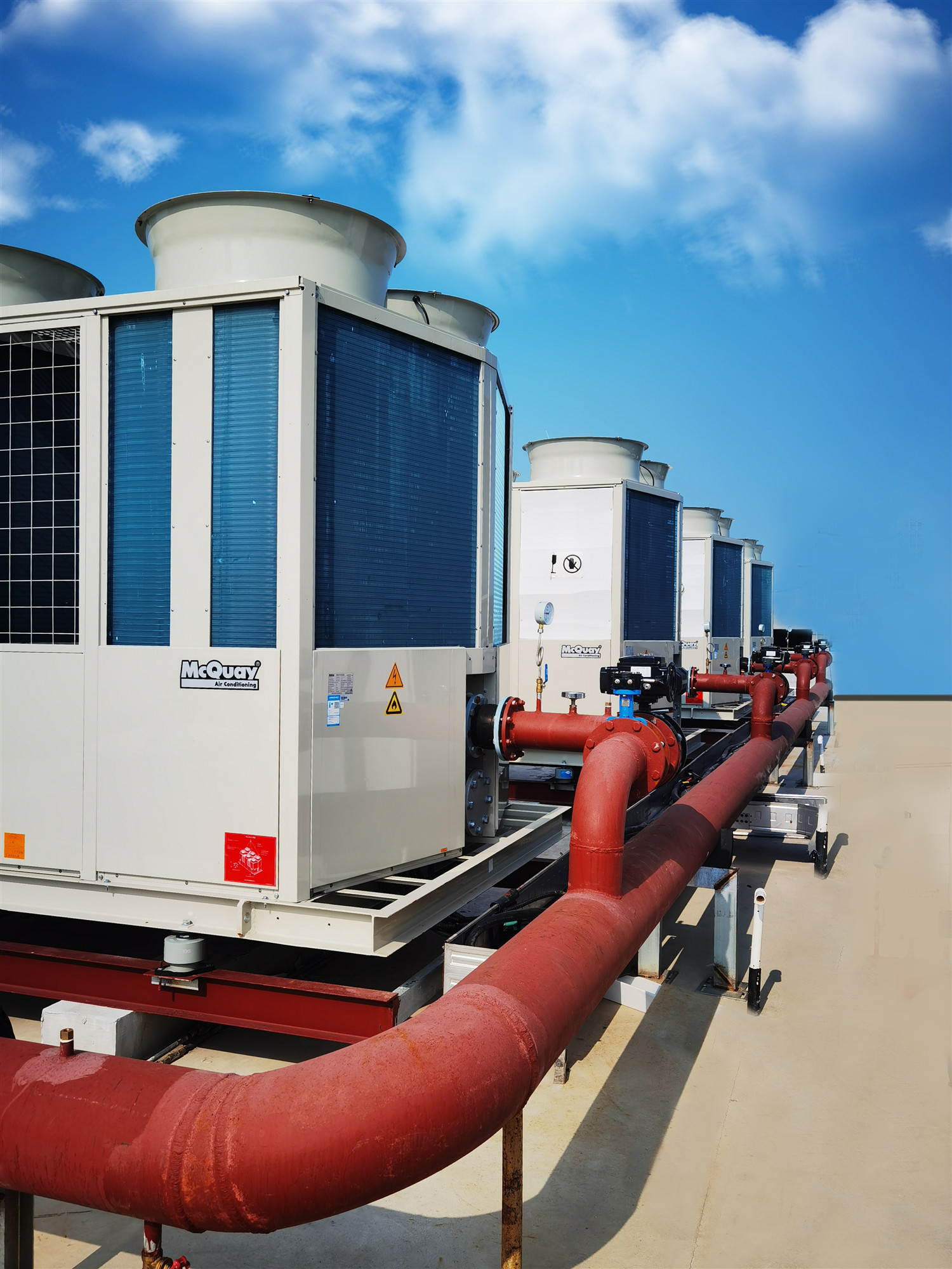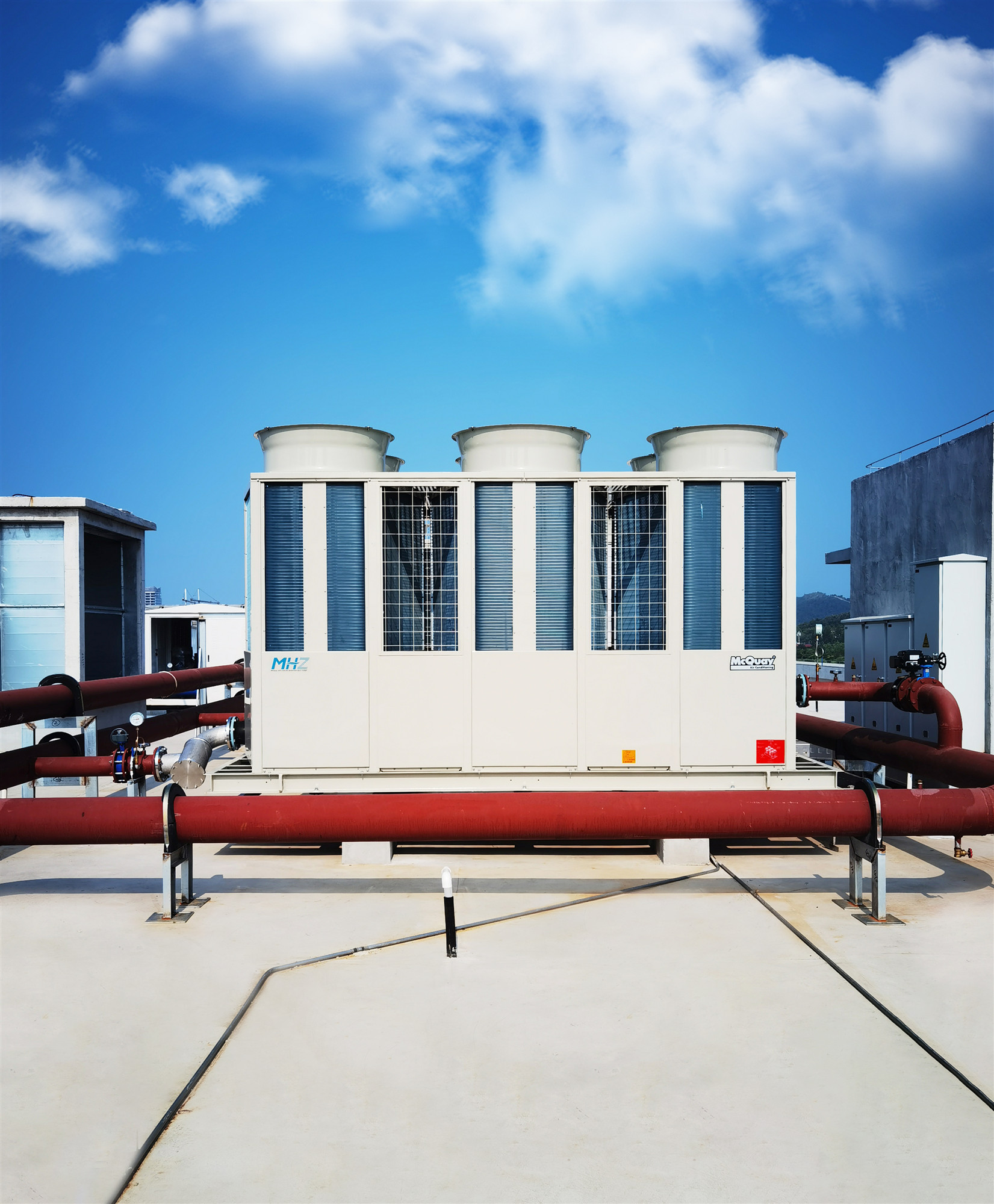 面对航天级设计院提出的高稳定性与全变频节能硬指标,项目最终选用麦克维尔MHZ系列全变频风冷热泵机组作为核心热源。该机组凭借全变频压缩机与风机技术,可实现冷热量的无级精准输出,实时响应实验室负荷变化,在保障±0.5℃温控精度的同时,大幅降低部分负荷能耗,直击项目“高效节能”的核心诉求。