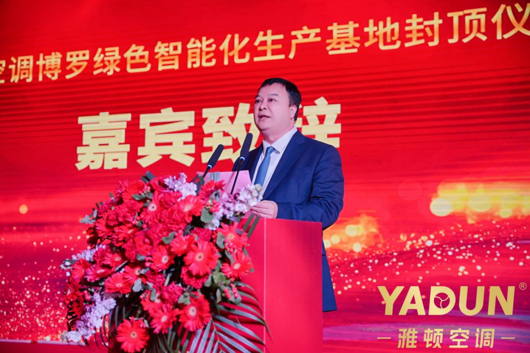封顶仪式现场,红绸高悬映喜庆,礼炮齐鸣庆圆满,处处洋溢着热烈祥和的氛围。这喜庆的场景,既彰显了雅顿空调深耕行业的丰硕积淀,更承载着企业迈向未来的美好期许。广东雅顿空调设备制造有限公司董事长谢丽美向莅临现场的各位领导、嘉宾、合作伙伴以及所有为项目建设倾注心血、辛勤付出的全体工作人员致以最诚挚的感谢。她表示,自创立以来,雅顿空调始终坚守“客户至上,恪守承诺”的立身之本,秉持“匠心传承,品质为根”的发展理念,以精益求精的态度打造每一台经得起市场检验的优质产品。此次新建的博罗智能化生产基地,以工业4.0标准打造,集成5G全连接、AI智能控制、数字孪生等尖端技术,将为雅顿空调的全球服务网络再添强劲动力,为更多用户带去中国智造的卓越品质与高效服务。