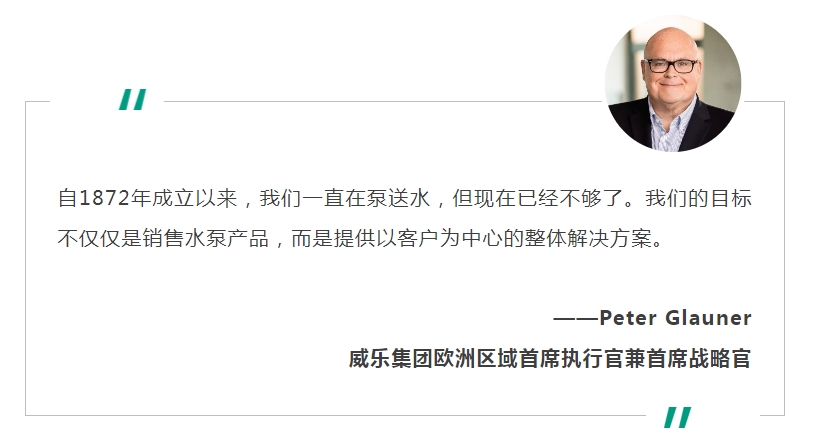 威乐集团欧洲区域首席执行官兼首席战略官Peter Glauner先生在峰会中发表了 “仅削减成本无法带来增长”的主题演讲,分享了威乐从泵制造商向解决方案提供商转型的真知灼见。在与波鸿鲁尔大学的Jens Pöppelbuß教授的圆桌对话中,他进一步对该主题进行了延展交流。