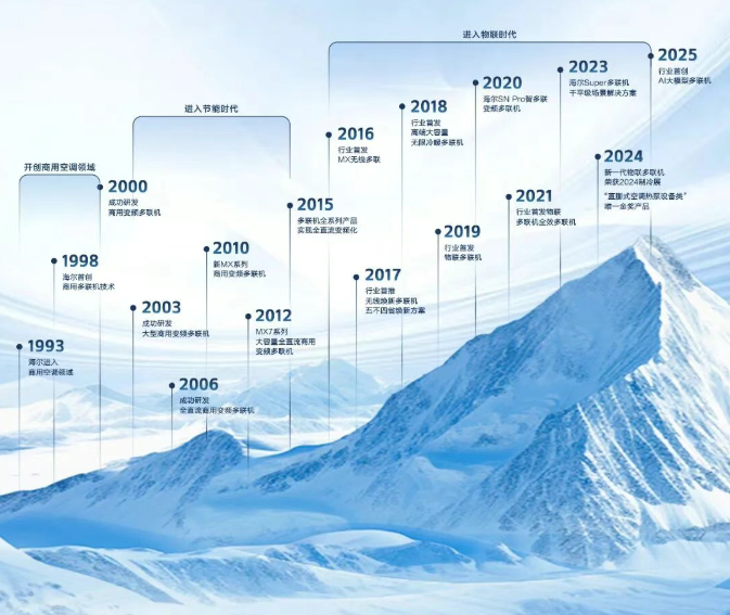 这份亮眼成绩单绝非偶然,而是海尔深耕大暖通商用市场、以原创科技破局的必然结果。从最早进入商用空调领域,到推动多联机产品全变频化,开创节能时代,而后发布全球首个物联云平台,再到行业首创AI大模型多联机,海尔大暖通的每一次技术跃迁,都不是简单的产品迭代,而是对行业发展方向的精准把控与主动引领。