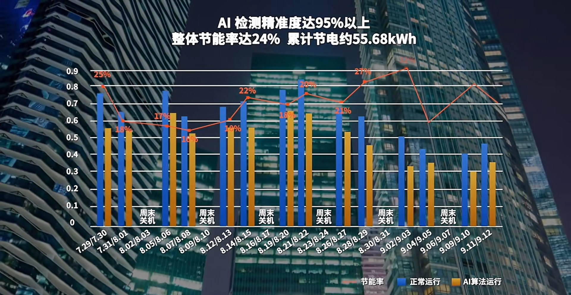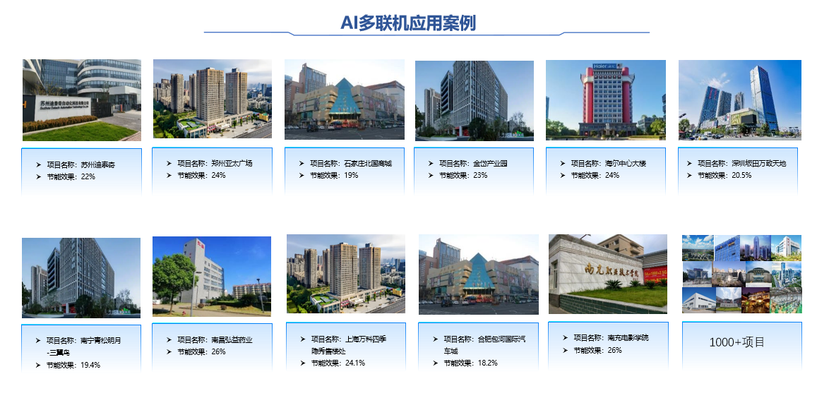 在杭州南湖未来科技园内,开启AI智控模式后,每月可多省约5000kWh;在南昌弘益药业,海尔AI多联机节能率达到26%,南充电影学院节能26%、金岱产业园节能23%、深圳坂田万致天地节能20.5%……