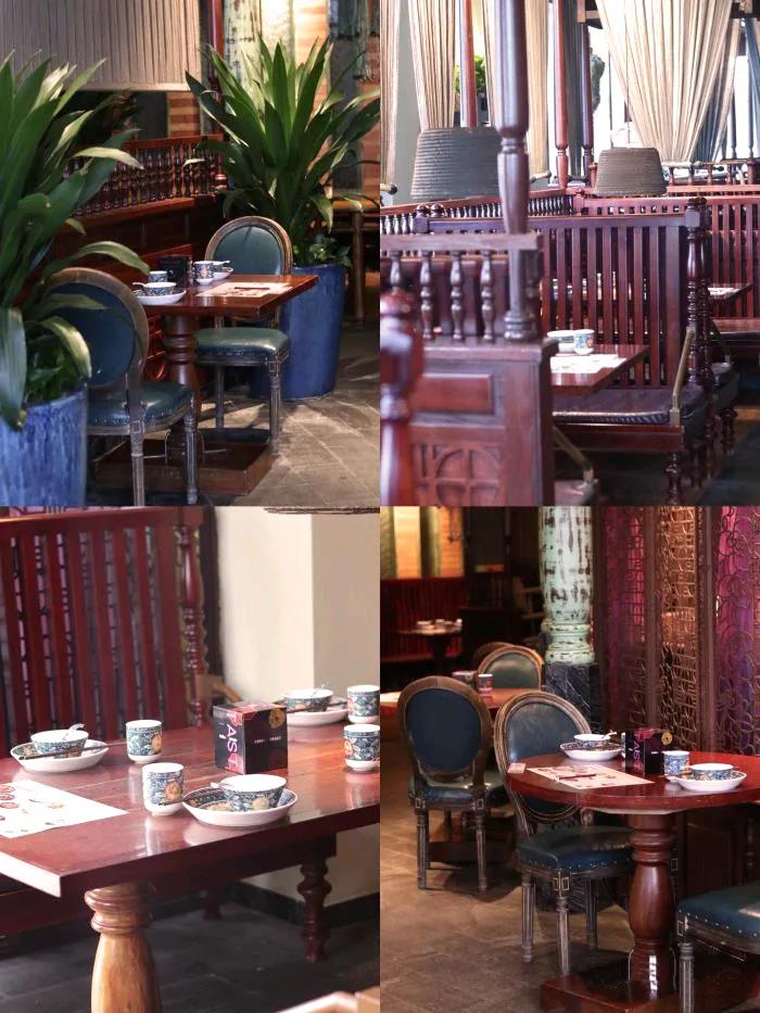 餐馆内的餐桌凳椅样式各异,仿佛有一种“不爱‘硬座’还能选择‘软座’——总有一套桌椅适合你”的周到。
