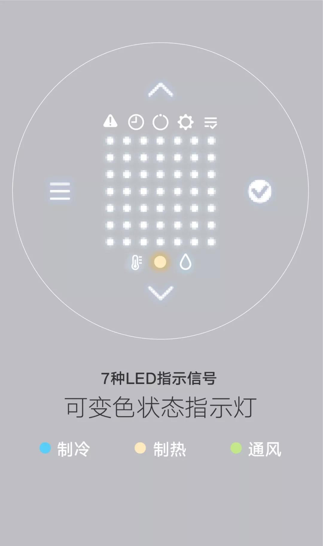 7*7点阵式LED显示方式,让界面显示更加清晰明亮。操作界面是以点阵式图案为主,不添加任何文字,便于各类人群的使用,尤其对于老人来说更易懂、更易操作。