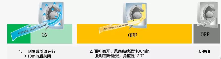 · 具有干燥防霉功能,空调关闭后,风扇会自动持续运转30分钟,进行通风干燥运行,确保机身干燥,减少霉菌滋生。