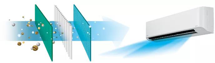 东芝IAQ技术,有效消除室内异味,活性炭儿茶素滤网配合初效滤网,做多重防护,净化室内空气。
