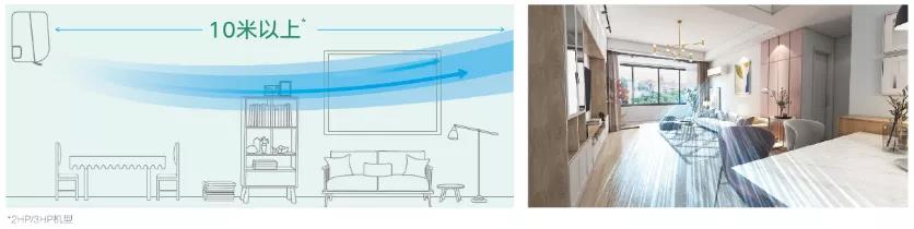 ①可达10多米的超远送风距离,超广角的百叶调节幅度,12档角度调节,可照顾到每一个角落。