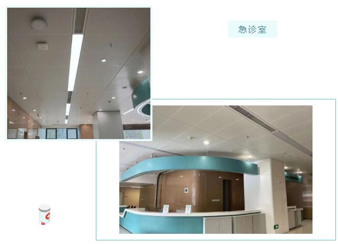 在急诊室,抬头可见东芝小巧型超薄暗藏天花风管式室内机正在悄然输送舒适空气,其紧凑的机身设计减少空间压抑感的同时提高美观度,让医患在不经意间享受惬意。