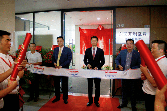 在乔迁仪式上,东芝空调总裁丸山峰生先生、副总裁杨燚华先生以及核心合作伙伴代表厦门营嘉总经理许燕春女士、厦门千铂机电总经理张竞远先生发表了热情洋溢的欢迎辞。在热烈的掌声中,领导剪彩与揭幕将乔迁盛典推向高潮,大家共同祝愿公司的明天更美好,祝福公司的未来更加灿烂、辉煌。