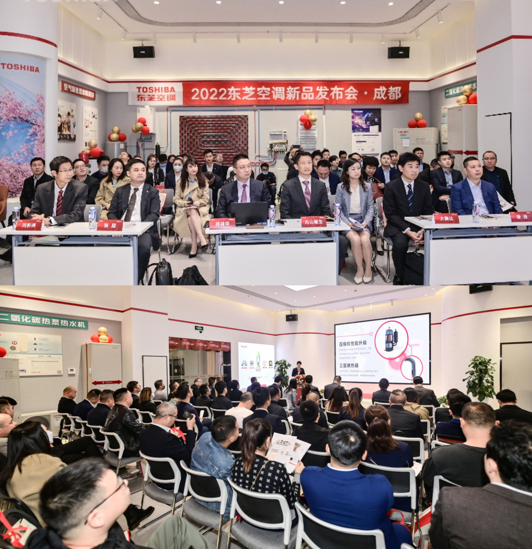 东芝开利空调销售(上海)有限公司总裁丸山峰生先生,副总裁杨燚华先生,西区营销总监张超先生,战略企划部总监刘彩祥先生,产品企划部总监大熊让先生,及成都核心合作伙伴参与了此次新品发布会,共享新产品,共探新未来。