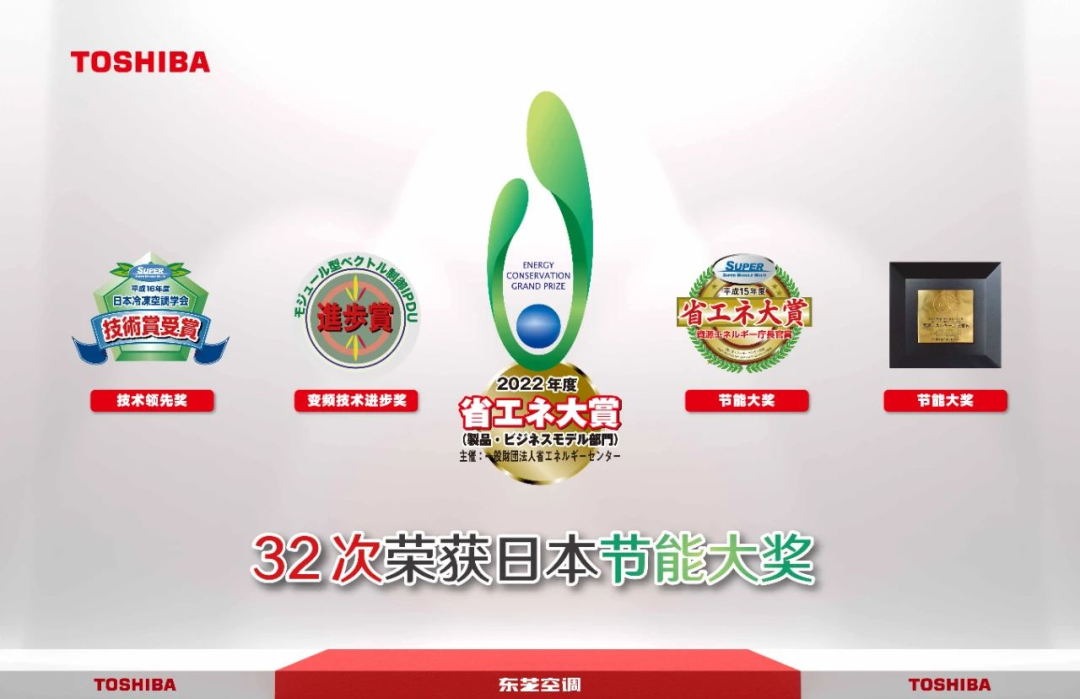 日本节能中心颁发的ECCJ日本节能大奖创办于1990年,致力于全方位地推动节能事业的发展,在日本享有极高声誉,是当前大型项目集采、普通消费者日常选购家电产品时的重要参考依据。东芝空调始终秉持着节能高效的理念,为用户带来更舒适、更节能、更安全的产品,已累计32次荣获日本节能大奖。