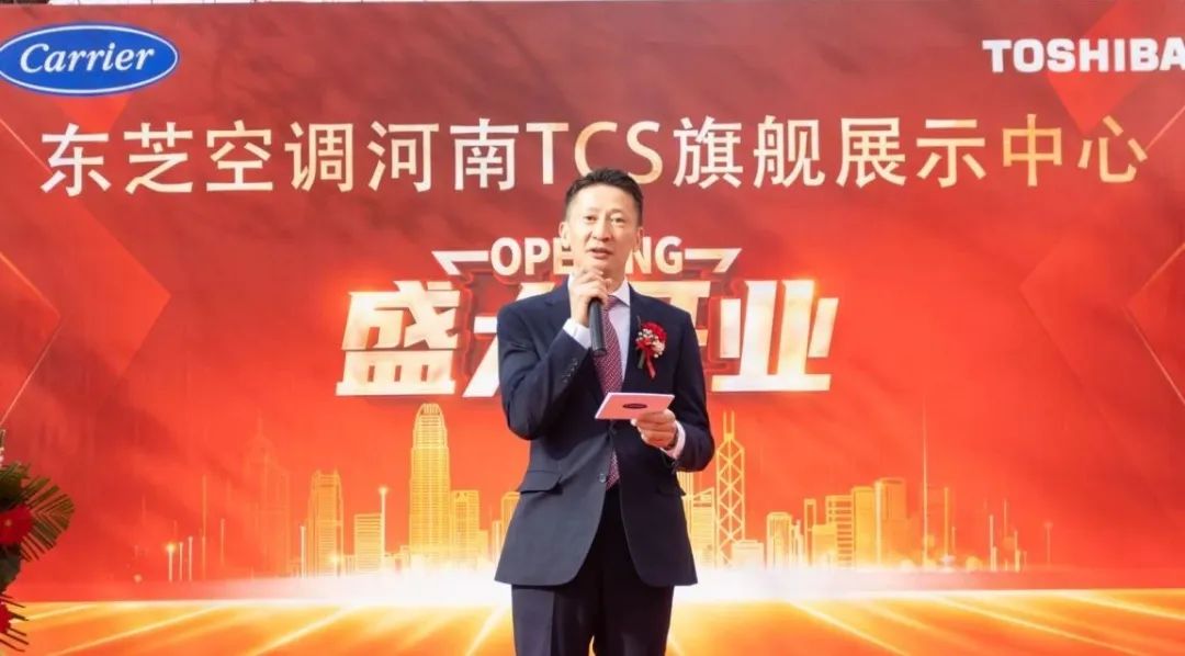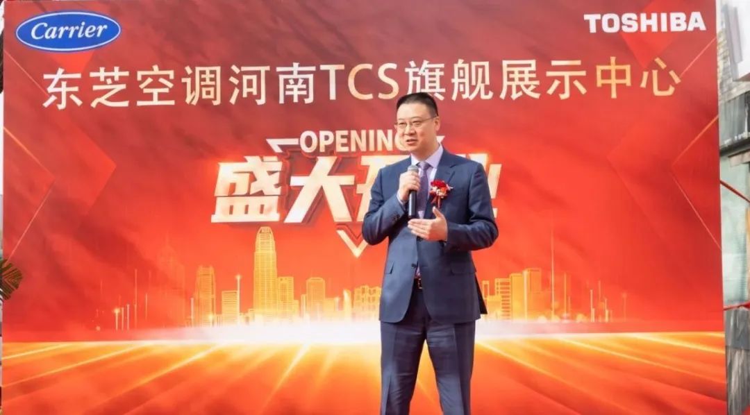2023年11月22日上午,东芝空调全国第25家TCS旗舰展示中心开业盛典,在郑州主干道之一的郑汴路隆重举行。开利暖通空调北亚区总裁余敏义、开利家用及轻商中国区总裁丸山峰生、副总裁杨燚华、销售部总经理李明、 销售部副总经理李涛、商务整合负责人刘菲彤、市场传播总监刘彩祥、东区销售总监肖锋、开利商用暖通空调西区总经理张勇,以及郑州市宇辰机电设备有限公司总经理吕恒振与郑州的核心合作伙伴齐聚一堂,共同见证了这一重要时刻。
