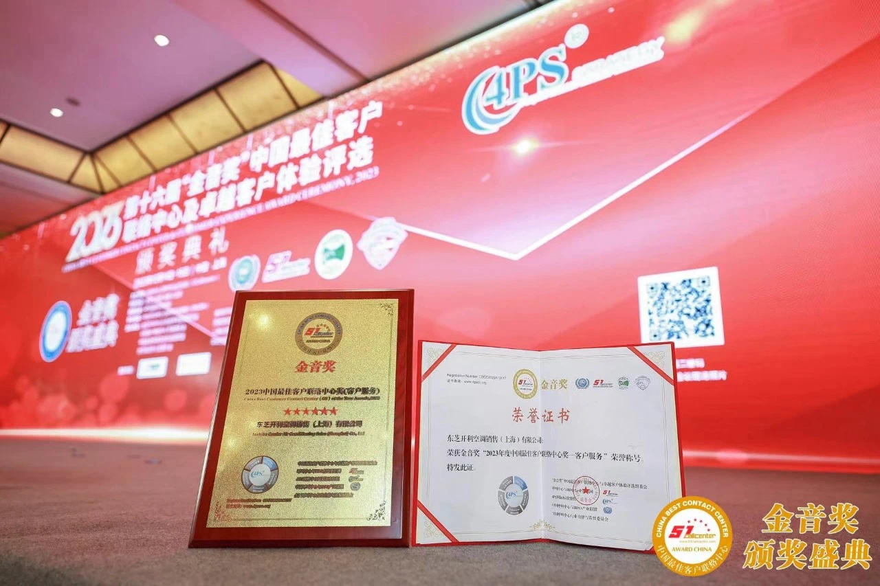 东芝空调连续六年荣获金音奖「中国最佳客户联络中心奖-客户服务」奖