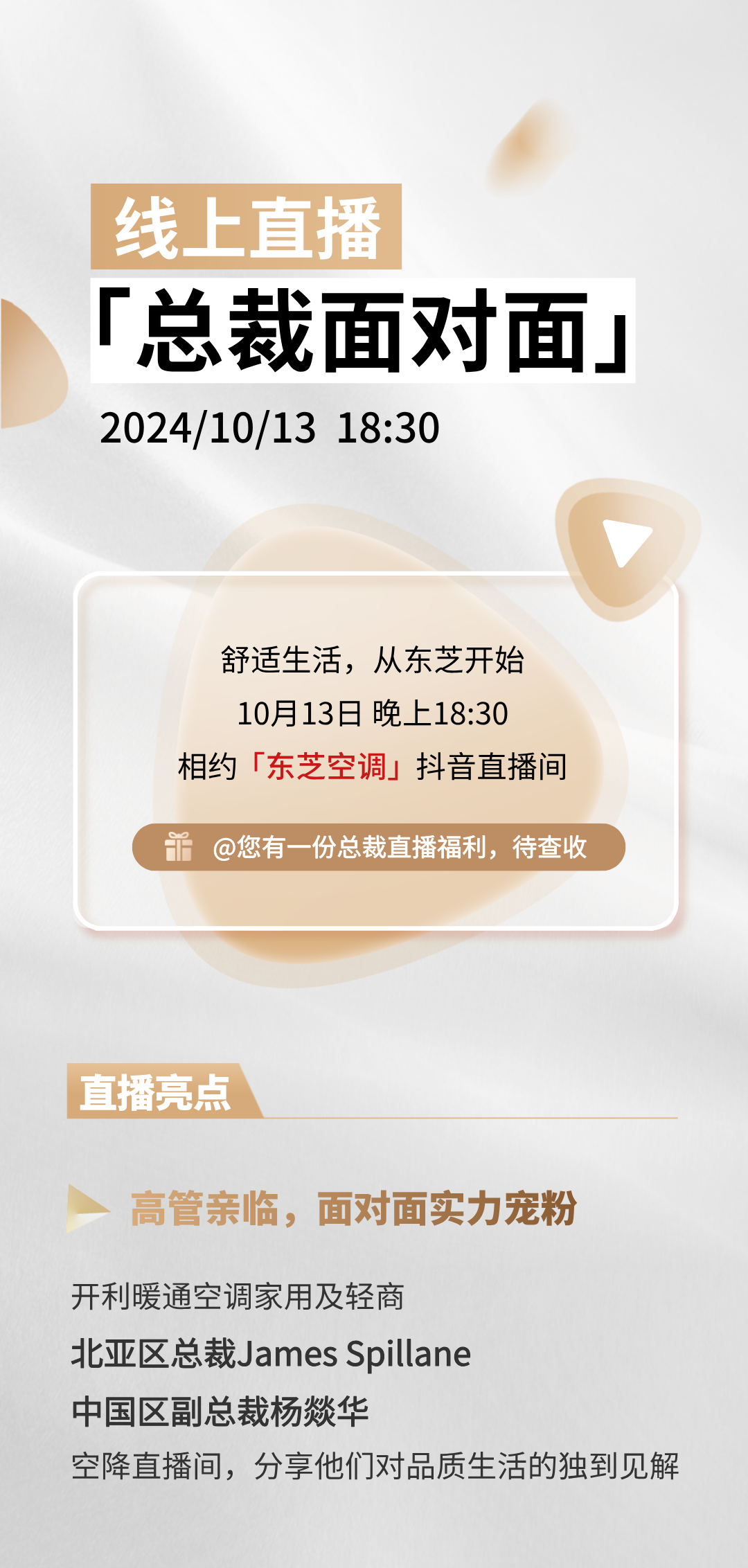 直播预告 | 总裁空降宠粉,共同探寻「舒适生活方法论」-东芝空调-冷暖商情