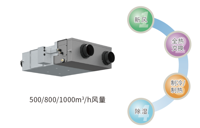 东芝四效全能新风机集新风、全热交换、制冷/制热、除湿为一体,引入新风、改善空气质量的同时,还可调节室内温湿度,为您带来舒适体感,解决室内霉菌困扰。