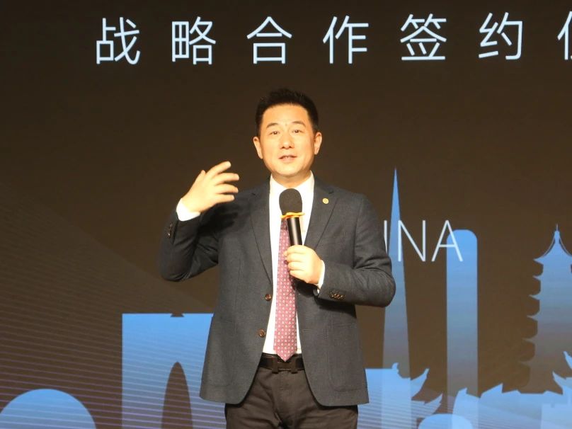 签约现场,开利暖通空调家用及轻商北亚区总裁James Spillane、中国区副总裁杨燚华、红蚂蚁集团董事长李荣分别就双方此次的战略合作上台致辞。