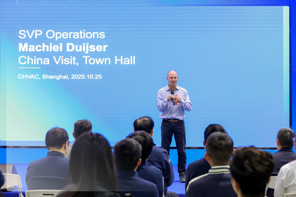 访问期间,Machiel在上海、杭州分别召开员工大会(Townhall),与核心运营团队进行深入交流,庆祝开利一冷工厂30周年,并回顾“开利制造月”活动精彩时刻。同时,Machiel在员工大会现场表彰了在创新致胜、客户服务以及精进专业等方面取得优异成就的团队,鼓励全员在保持全球视野的同时,创新本土化发展,加强制造环节的数字化和智能化,将安全与效率融入日常运营。