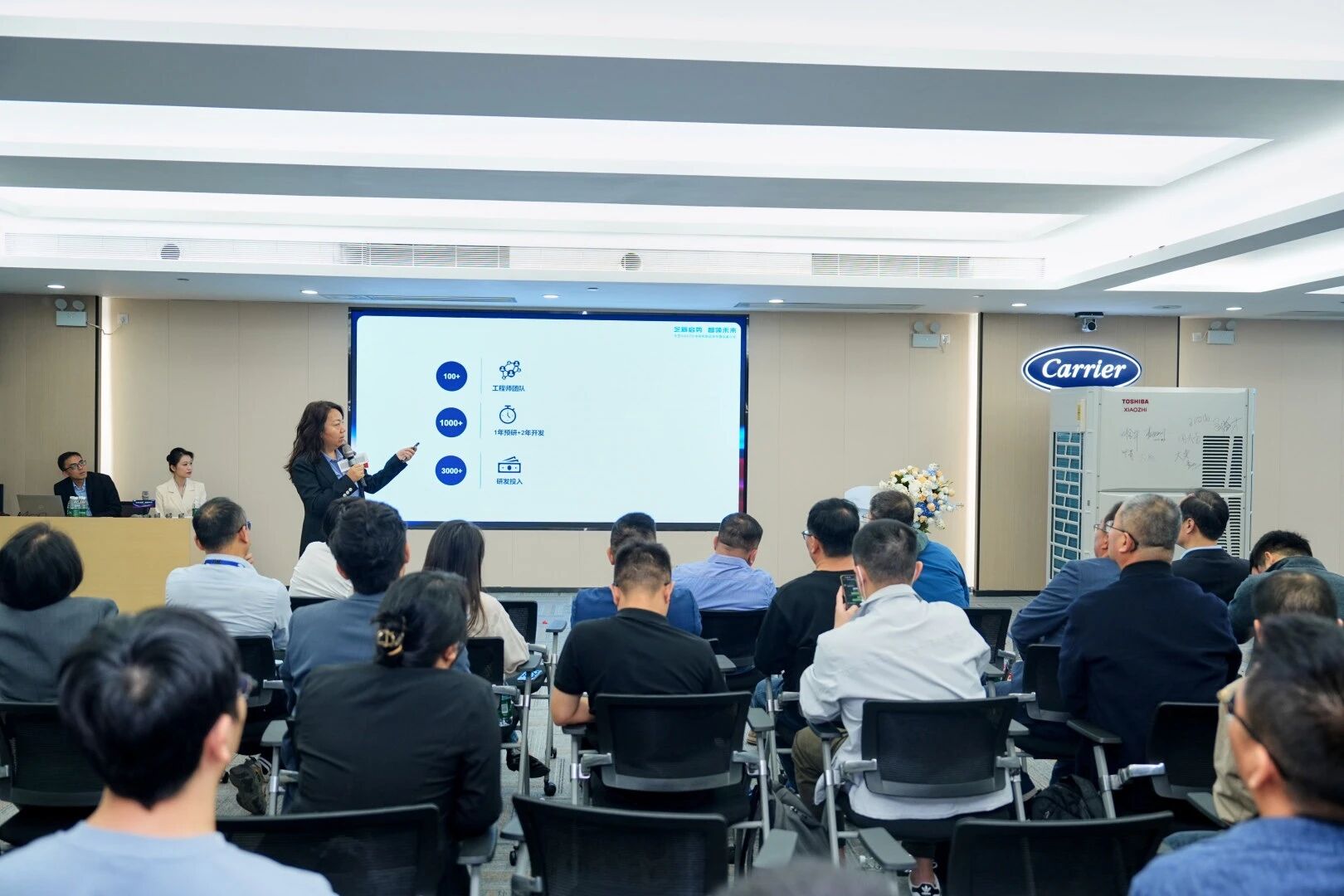 在本次品鉴会上,开利家用及轻商舒适家居解决方案中国区技术与创新总监兼开利南海园区副总经理王微涓,分享了开利RLCS的研发实力与东芝XIAOZHI多联机的研发历程。她提到,为打造这款契合市场需求的标杆产品,研发团队历经一千多个日日夜夜的潜心钻研与反复打磨,在核心技术、性能优化与用户体验上实现多重突破。