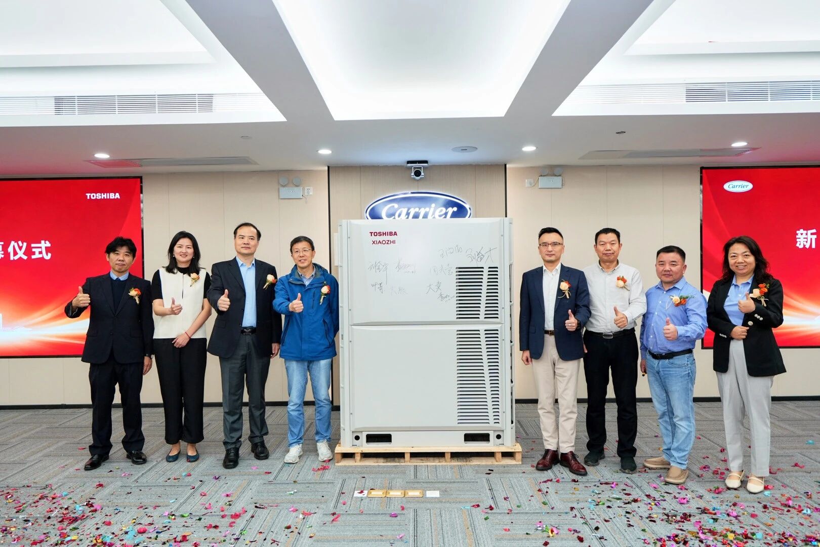 活动汇聚开利家用及轻商空调中国区销售总经理李明先生、开利北亚区家用及轻商南区销售总监周倜先生、开利北亚区家用及轻商舒适家居解决方案首席财务官叶菁女士、开利北亚区家用及轻商产品管理总监大熊让先生、开利北亚区运营总经理李旭刚先生、开利RLC/HCS运营总监兼开利南海工厂总经理周武壹先生、开利家用及轻商舒适家居解决方案中国区技术与创新总监兼开利南海园区副总经理王微涓女士、开利南海园区工厂运营负责人赵洁女士、华南理工大学动力学院动力工程系主任、广东省制冷学会理事长刘金平教授、中南大学制冷与低温工程系主任、湖南省空调协会理事、湖南省制冷学会常务理事刘益才教授等领导、专家及合作伙伴,共同见证东芝XIAOZHI多联机新品首发。