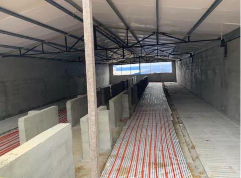 (1)目前,猪场已建设好四个保育猪舍,并已铺设好地暖。