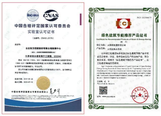 太阳雨集团“绿色建筑节能推荐产品证书”