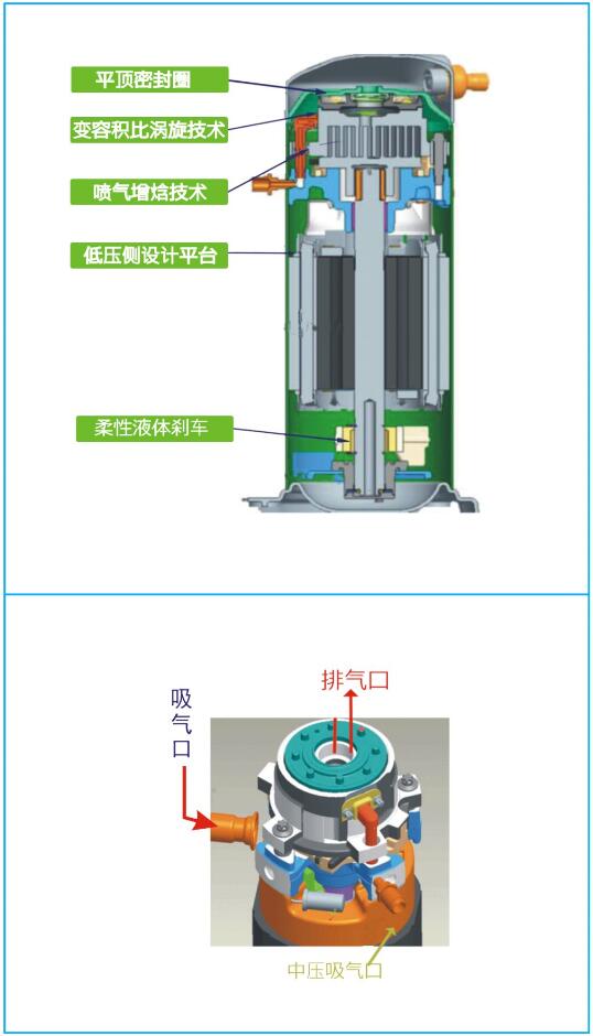 喷气增焓压缩机的采用增强了机组的效能: