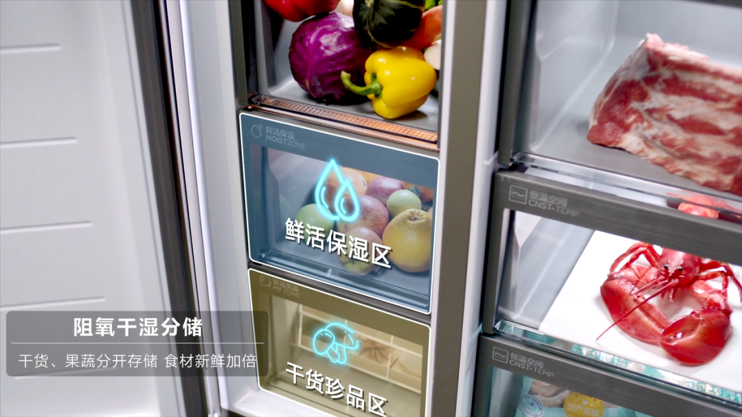 食材囤得越多、种类越杂,对冰箱的健康保鲜能力要求也就更高,冰箱不仅要留住食材的营养水分,还要避免食材串味、防止冰箱产生异味。
