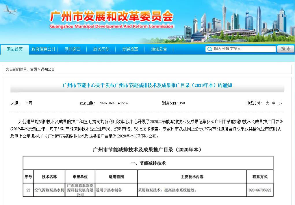 纽恩泰强势入围《广州市节能减排技术及成果推广目录》!
