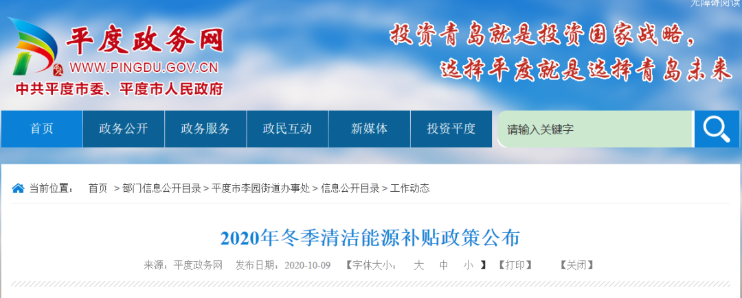 近日,平度政府网发布的《平度市2020年冬季清洁能源补贴政策公布》显示为全面落实习近平总书记关于北方地区冬季清洁取暖的重要指示,打响蓝天保卫战,减少大气污染物排放,有效保障和改善民生,根据《青岛市2020冬季清洁取暖建设实施方案》相关要求,推进农村清洁取暖工作。