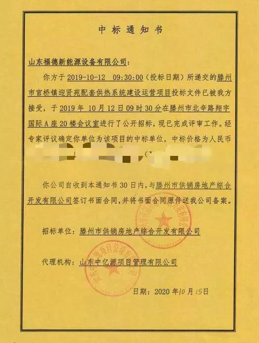 “通过此次中标,中科福德可以积累供暖运营BOT模式的经验,为今后中科福德发展开辟了一个新的发展方向。”中科福德集团董事长孔德军说,官桥镇迎贤苑项目建设是当地集中供热的现实需要,将有力地推动当地节能减排事业的发展进程,借助这一项目,中科福德也将以此为契机,将该项目打造成中科福德的BOT绿色供暖样板工程,助力中科福德实现高质量发展。