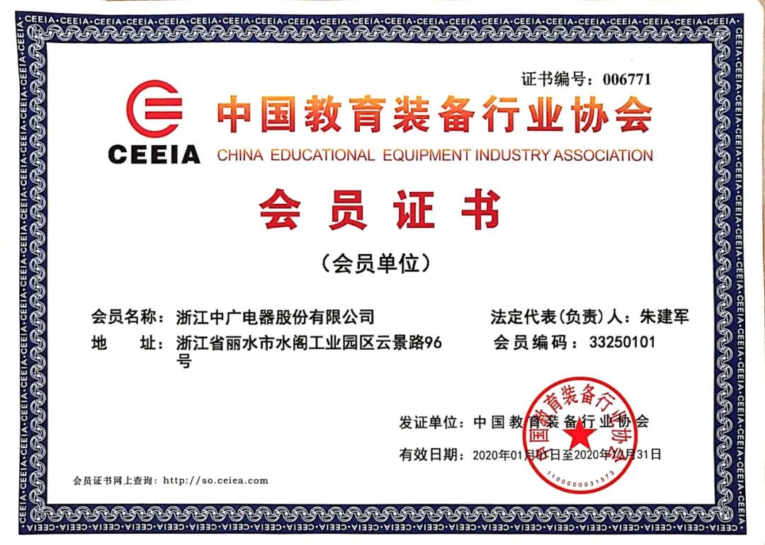 △中国教育装备行业协会会员证书