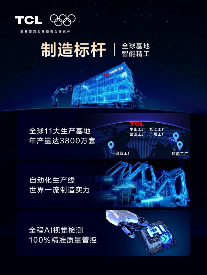在制造端,TCL作为全球领先的智能科技产业集团,历经44年发展与积淀,展现出大国品牌的雄厚资本与产业规模底蕴。TCL智能暖通配备9条国际一流自动化生产线,以强大的制造实力与集团资源,为合作伙伴奠定稳健可信的合作基础。此外,TCL智能暖通以全球布局的11大生产基地铸就一流的制造硬实力,年产量高达3800万套,为市场稳定供应提供坚实保障。生产体系采用自动化生产线并结合AI全程视觉检测技术,实现从零部件到成品的100%精准质量管控,以研发驱动的智能制造能力确保每一款产品的高品质与高可靠性。